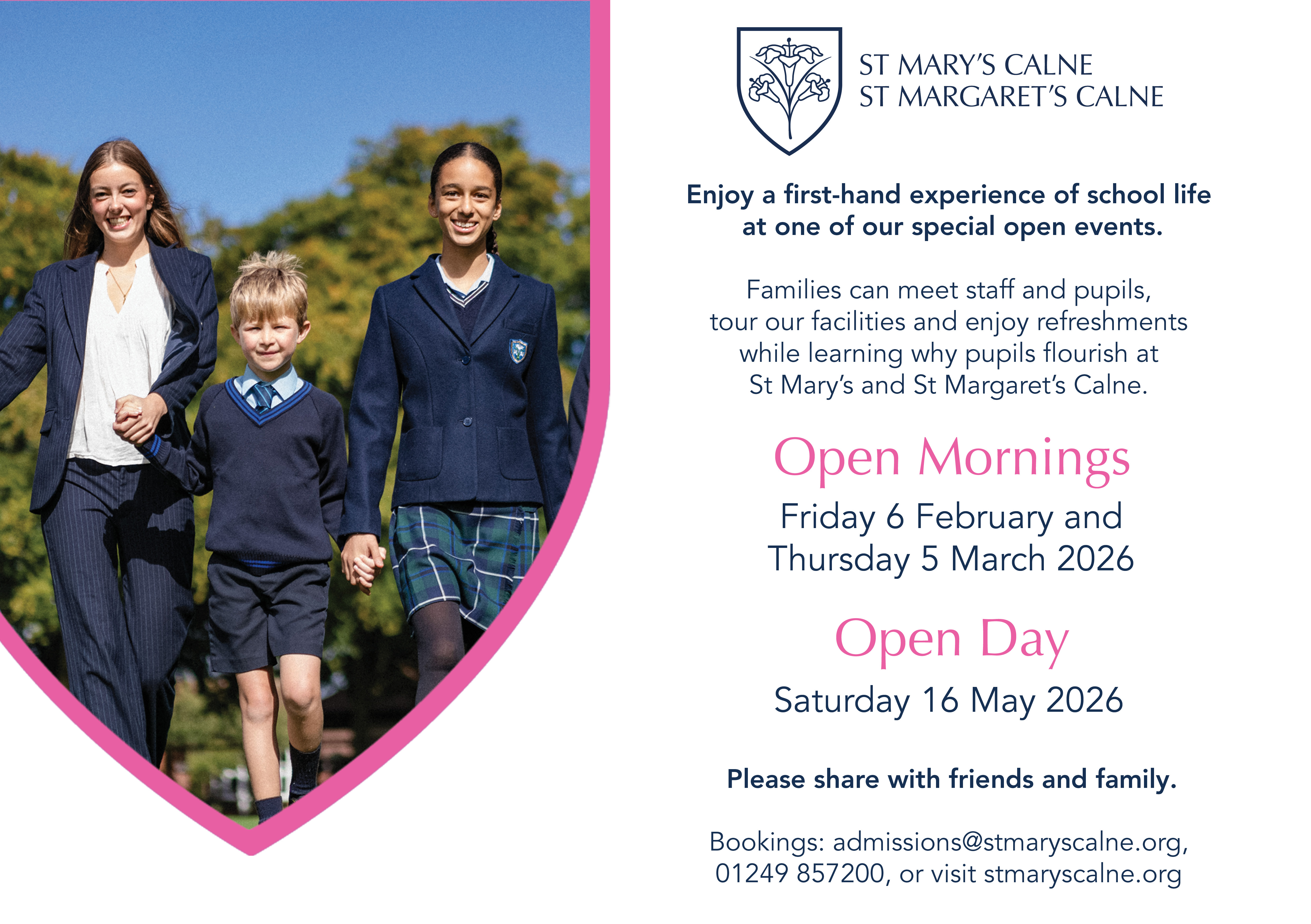 Booking: admissions@stmaryscalne.org